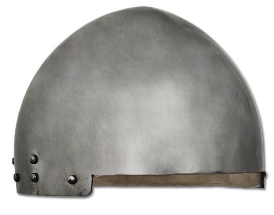 Helmets were an essential part of medieval armor. The first major advancements in medieval helmets occurred in the 10th century when they could be forged from one piece of iron. This made the armor helmets much more durable and provided a greater level of protection. Most of our medieval helmets are wearable and forged from 14 or 18 gauge steel.