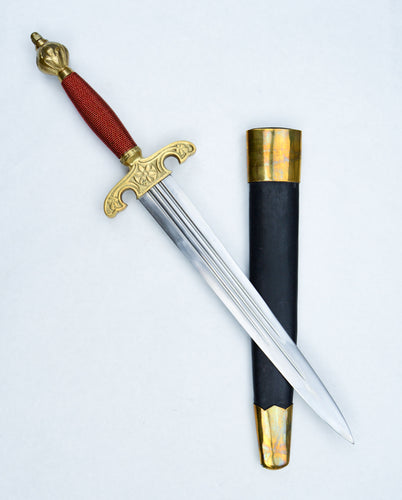 The dagger disappeared in the early middle ages and did not resurface until the 12th century. During this period the "knightly dagger," or more properly cross-hilt dagger, was developed into a weapon and tool for civilian use. Our daggers are forged from the highest quality materials and are as durable as their historic counterparts.