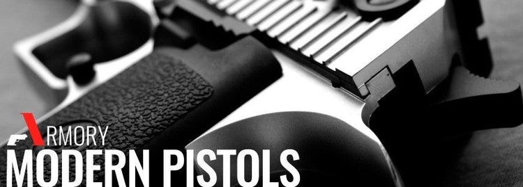 Handguns have been used throughout history, both as a tool for survival and an implement of war. The first automatic pistol (modern) was created by Joseph Laumann in 1892. Many other models, such as the Browning, Luger, and Colt came quickly after. Armory proudly offers modern pistol replicas that date from the 1890s to modern day.