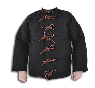 This style of arming jacket in black from GDFB has leather-tie closures with leather reinforced eyelets. Crafted in heavy-duty padded canvas, it has excellent blow-absorbing properties when worn separately and provides superior protection from cuts when worn under mail or plate. Cas Hanwei also offers a wide selection of weapons, armor and clothing from GDFB for the re-enactor