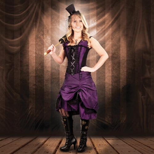 The Dita is a truly versatile and stylish taffeta dress with black lace details and frills. Both the front and back have the ability to hike the outer skirt and black underskirt.