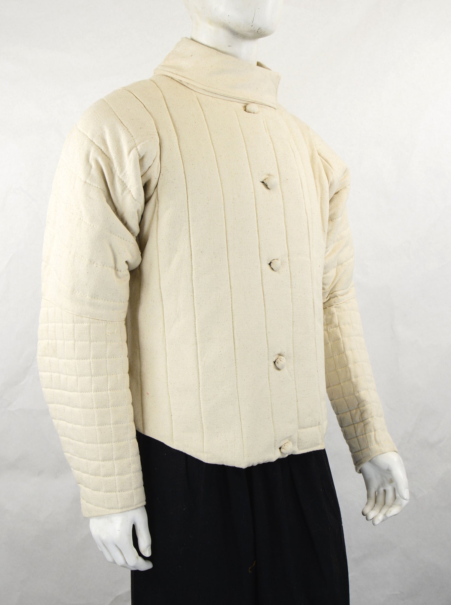 The Fencing Jacket is constructed from thick, quilted cotton with substantial padding. The exterior is tough canvas fabric and the inside is organic cotton fill - this natural filler is more breathable than the poly-fill used on many other padded jackets on the market.