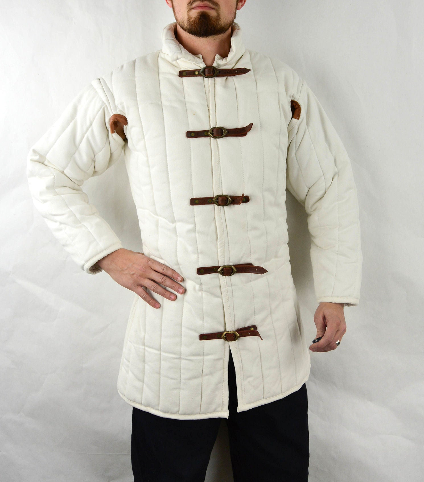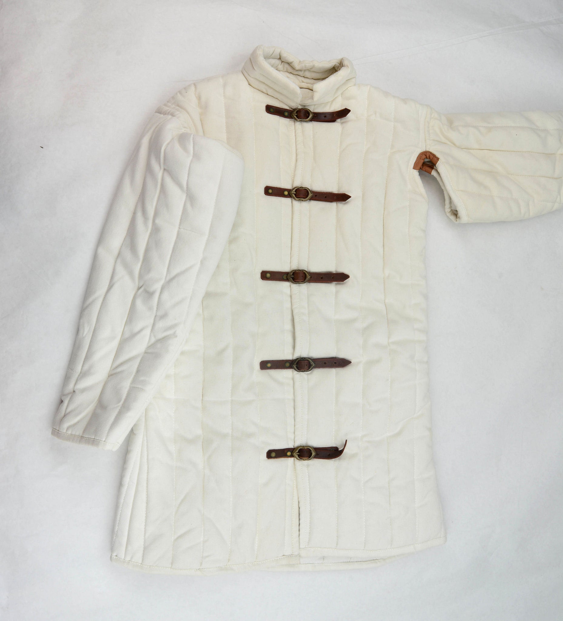 Unlike other gambesons, this one is not so thick as to make it stiff. The padding is thin enough to allow it to have a degree of flexibility similar to a thick coat.