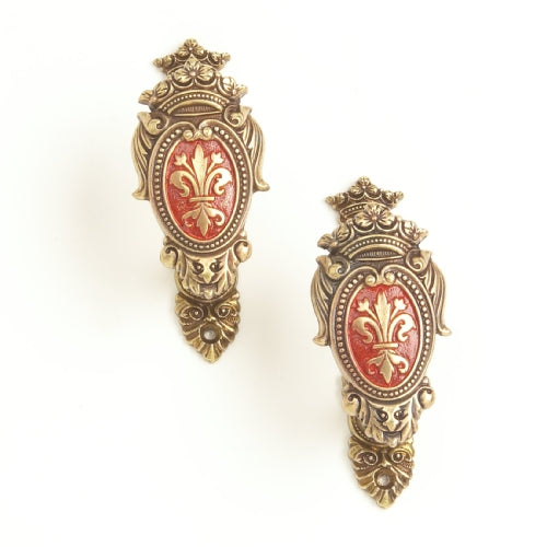 These attractive, decorative hangars are spring loaded to adjust to fit larger sized guns and swords (up to 2" in width). Beautifully engraved in gold finish with red background for the center crest, these hangers will do justice to your best pieces.