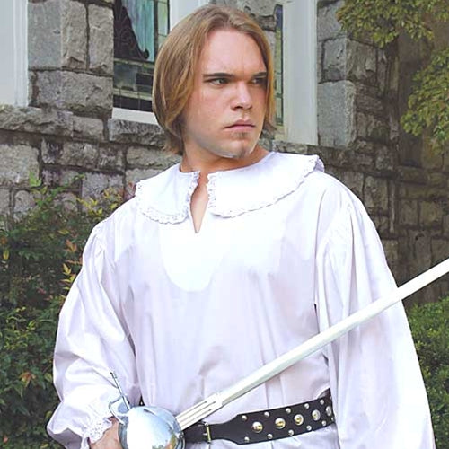 This shirt is the perfect companion piece for the Musketeer ensemble. Although designed to accent the Musketeer Tabard, the lace collar and sleeves allow you to combine it with a variety of additional outfits. Made of a polyester/cotton blend, this shirt will give you years of practical use. Available in S/M, L/XL or XXL (add $4.00).