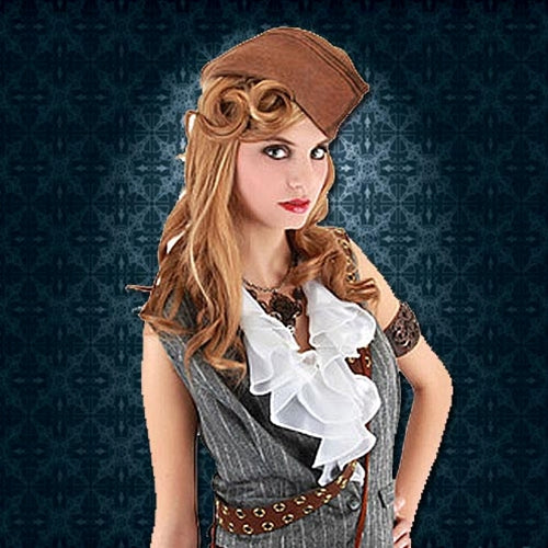 Onlookers will stand up and salute this steampunk-inspired naval officer hat. The fabric and suede material provide a comfortable fit. Great for women and men. (Large key brooch not included)