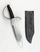 This Pirate Dagger is nearly a short Cutlass - ideal for cramped fighting on deck or as an off-hand parrying dagger for a skillful Pirate duellist. The blade is high carbon steel. The guard is blackened steel and the wooden grip is finished with a tight leather wrap. A sheath of thick leather is included.