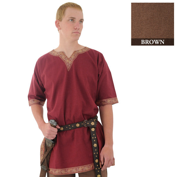 Typical of the Viking horde, this authentically-tailored shirt features decorative ribbon and half sleeves.