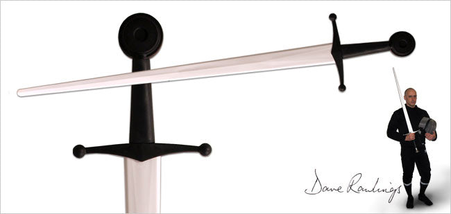 The blades are designed to flex in the last one-third of their length towards the tip, allowing for much safer thrusting than with conventional wooden wasters or shinai. The blade/tang joint is reinforced by a high tensile steel rod running along the full length of the handle, so removing the handle flex typically associated with plastic training swords. These synthetic-bladed swords also provide an excellent option for theatrical use, being inherently safer than steel or aluminum. The variety of interchangeable parts offered by Hanwei also provides an economical means to create many different styles of sword on a single blade. The ball shaped quillon finials and rounded pommels of the Longsword and Single-hand sword are designed for sparring safety, as are the pommel and basket of the basket-hilt sword. The grips are manufactured from a rubber-like thermoplastic elastomer, designed to absorb the impact of strikes and to provide a tight fit on the tangs. These synthetic-bladed swords also provide an excellent option for theatrical use as well.